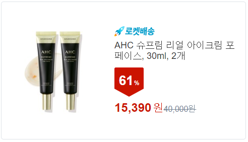 먼저 여성들에게 인기가 좋은 AHC 슈프림 리얼 아이크림이 무려 61% 할인된 가격에 판매되고 있고, 프리미엄 화장품인 설화수 자음생도 30% 할인된 가격에 할인 특가 중입니다. 시어머님이나 장모님 에게 선물해드리면 정말 사랑 받는 며느리, 사위가 되겠죠?^^
